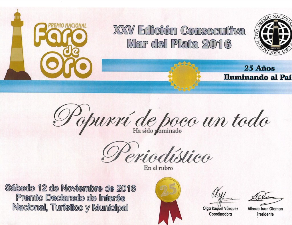Faro de Oro Diploma de Popurri