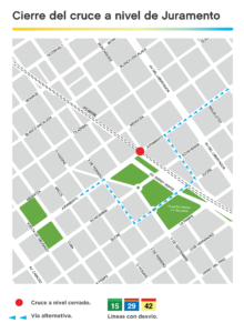 En el marco de la obra del Viaducto Ferroviario elevado en las vías del FF.CC. Gral. Mitre (ramal Retiro – Tigre) se cerrará la calle Juramento en su intersección con las vías del FF.CC. Mitre desde el jueves 29 de marzo hasta el jueves 12 de abril.