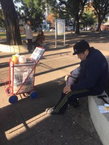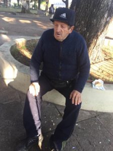 El Lunes 4, sufrió un desmayo por el frió y tuvo una baja de presión (lo atendieron en la guardia) y hoy 5/06, sigue vendiendo porque no tiene que comer, vive solito y pasa mucho frió todas las mañanas sentado ahí, para llegar a la Plaza, camina más de 25 cuadras.