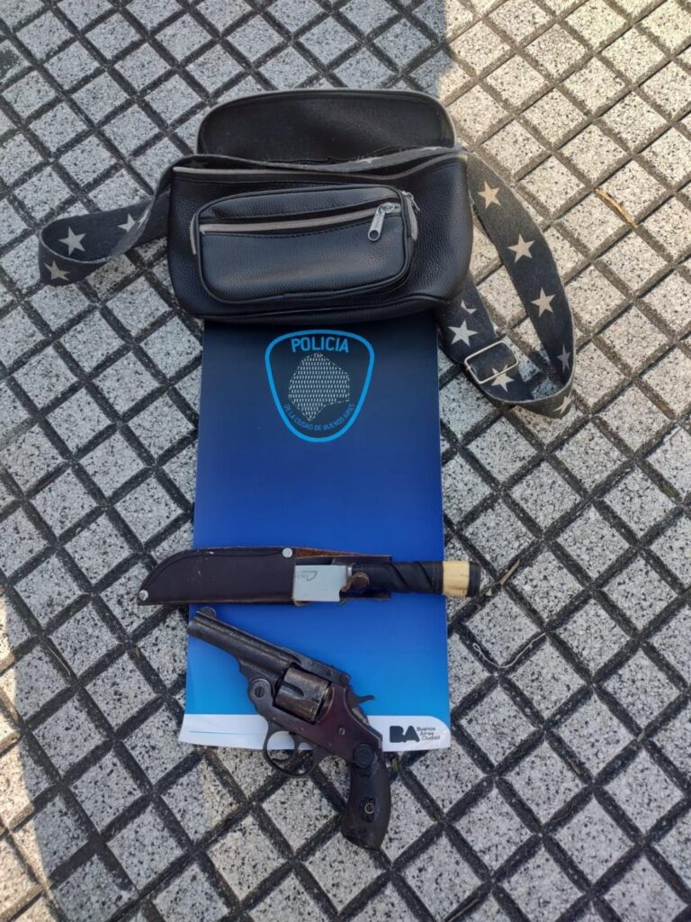 Tras identificarlos, se constató que se trataba de dos venezolanos de 22 y 24 años, a quienes, luego de ser requisados en presencia de testigos, se les encontraron un arma calibre 38 y un cuchillo.