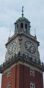 Los 55 mil ladrillos que conforman su estructura de estilo eduardiano vinieron desde Gran Bretaña, junto al imponente reloj Gillet & Johnston, que imita a su gemelo en la Torre Big Ben. Toda la ornamentación exterior remite a la cultura de las cuatros naciones que integran la corona británica y remata en una cúpula de cobre, que alberga cinco campanas de bronce, siendo la mayor de 7000 kilos.