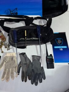 En presencia de testigos, los sujetos fueron requisados y les hallaron un inhibidor de señal, un par de guantes, dos destornilladores y un manojo de llaves.